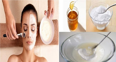 في وعاء صغير، ضعي صودا الخبز والعسل ثم امزجي جيد، أضيفي الماء وامزجي حتى الحصول على عجين متماسك. طبقي القناع على بشرتك واتركيه لمدة 15 دقيقة، اغمري قطعة من القماش في الماء الدافئ وادلكي وجهك بحركات دائرية ثم اشطفي بالماء البارد.